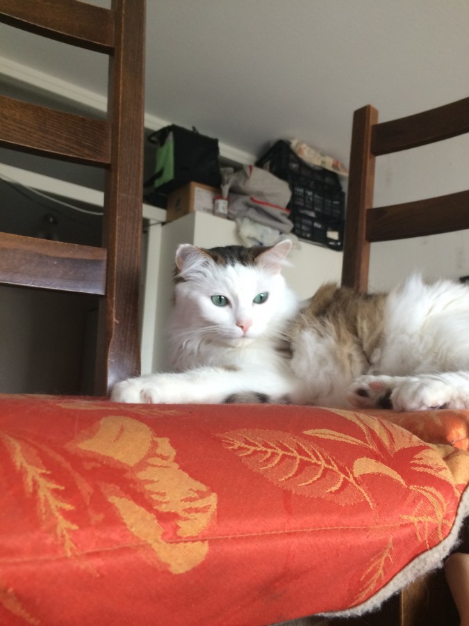 À mon retour, tout va bien, je la laisse reprendre possession de l’appartement, elle ne gronde plus après Hermès, parfait. Elle mange et boit, encore plus que parfait ! Et je la trouve plus vive et plus dégourdie dans ses mouvements même si c’est loin d’être fluide mais c’est bien normal.
