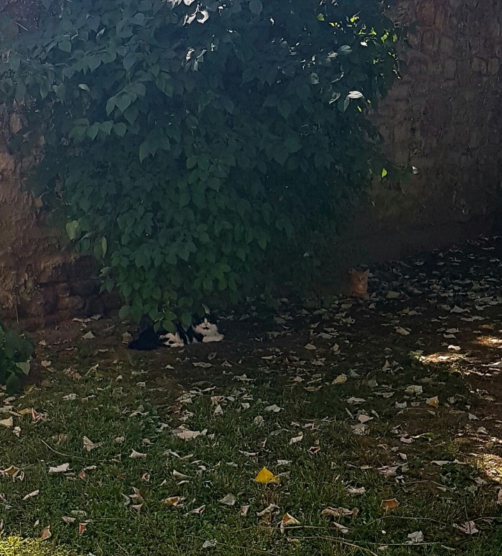 Je ne sais pas du tout comment elle a fait (à moins que l'oiseau se soit posé sur la rambarde du balcon et n'ai pas vu les chats) ...