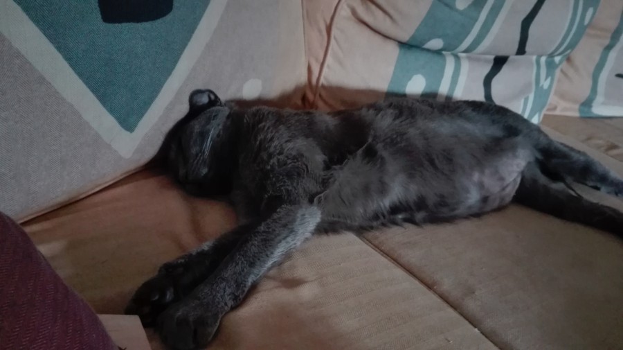 Elle est très indépendante, rentre tous les jours pour manger, m'accueille lorsque je rentre en voiture mais alors sinon, ça fait des mois qu'elle n'a pas piqué un somme dans la maison. Elle vit dehors, dort dehors, si elle reste 10mn par jour dans ma maison, c'est bien !