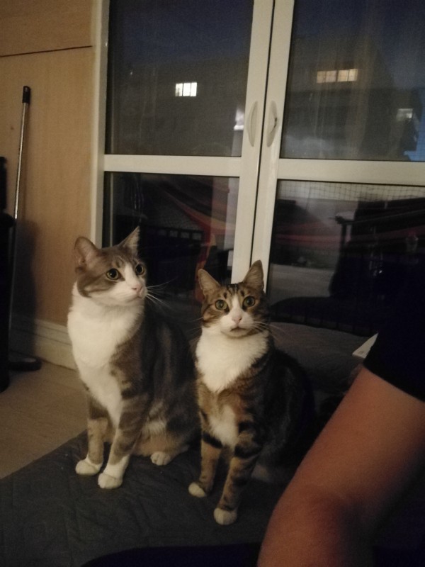 Quand je me suis couchée hier soir, je l'ai entendu se lever, boire, manger, faire sa toilette, aller dans la litière. A un moment, je sens deux pattes se poser sur mes pieds. Je pose ma main sur mon oreiller, Rosy est toujours là. Je suis donc ravie de voir qu'il est curieux et cherche à découvrir son nouveau chez lui. Il est revenu une deuxième fois sur le lit, mais Rosy a râlé...