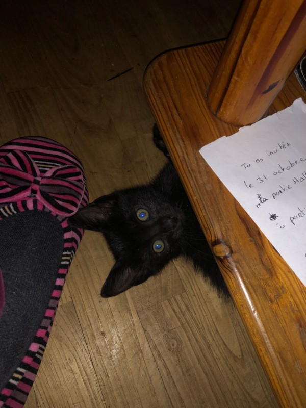 Chipster commence à me "courser" quand je marche dans l'appart...Et il se met sur le dos pour pleins de caresses...Et il ronronne.... Je dois par contre le gronder ("dis-donc! Non") s'il sort ses griffes.Il est très réceptif.