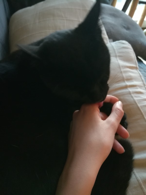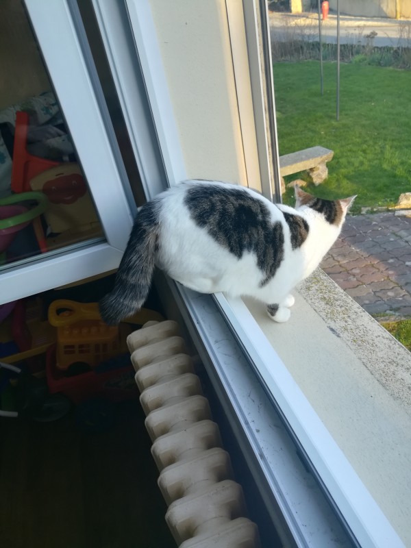 Du coup avec les autres chats, il ne se passe pas grand chose vu qu'il est toujours dans son coin à part...de temps en temps il viennent se renifler et cracher mais parce que on l'a pris pour l'emmener avec nous dans la cuisine par exemple.