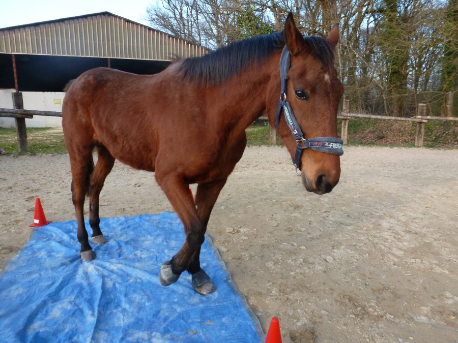 Quelques longes en licol...une visite de l'ostéo ...Veinard est totalement bloqué et ne passe pas son garrot...elle a débloqué les épaules et revient mi mai pour les hanches et le garrot. C'est ROBOCOP...