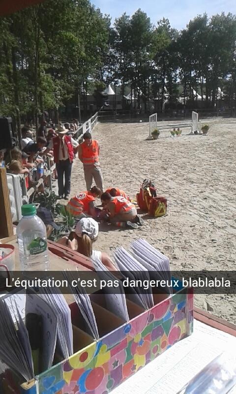 Par contre qui dit épreuve au chrono, dit grosses chutes, en 10 jours j'ai vu plus de chute cavalier et cheval compris que dans toute ma vie de cavalière. La plus grosse auras été un poignet cassé heureusement, mais ca retourne de voir le cheval s'étalé dans les barres ..