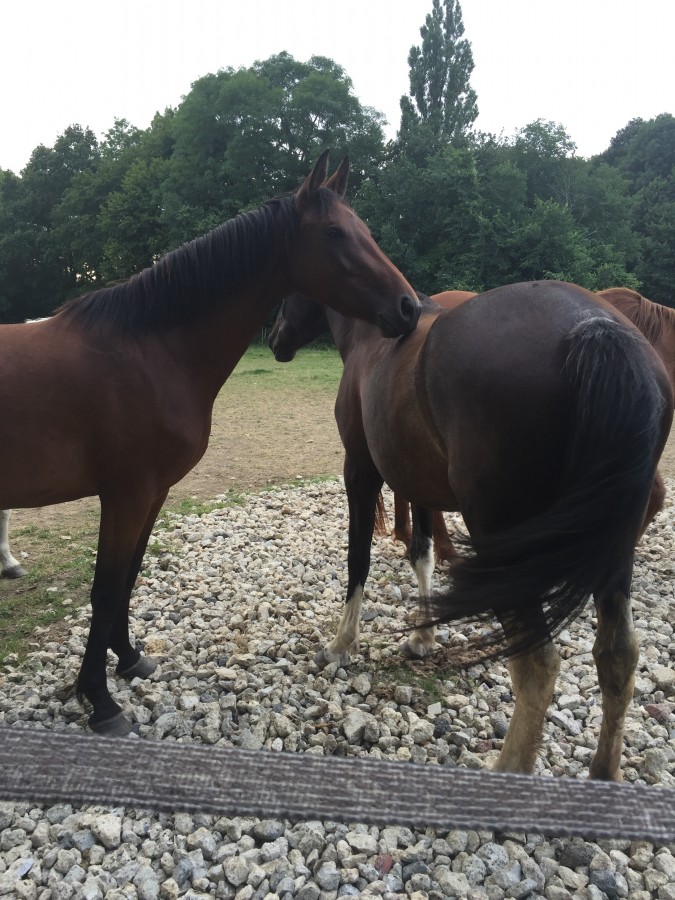 PS : Concernant mon Nini qui a un peu décollé, on en a reparlé ce week-end avec la gérante du pré et elle pense, comme moi, qu'un petit complément ne serait pas de trop histoire qu'il ne perde pas plus. Pour elle ce n'est pas catastrophique mais mieux vaut prévenir que guérir et s'y prendre tôt avant que ce soit trop dur à rattraper. On a donc recommencé à lui filer une gamelle de grain par jour depuis dimanche mais, à part sa fonte, il va bien. Comme dit plus haut, je l'ai monté dimanche sur le plat (certaines ont du voir les photos sur fb) et ce n'était que du bonheur !!