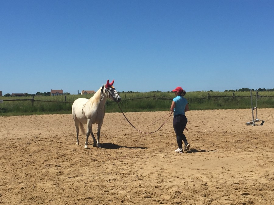 De notre côté on à repris un peu le boulot parce que après la plage il n'a pas foutu grand chose, Je suis très contente de lui, Il progresse vite. J'ai demandé à mon coach si on pouvait commencer à lui apprendre le départ au galop depuis le pas, Il m'a dit que c'était prévu mais qu'il manquait encore d'un chouille de stabilité dans son galop. Je pense que c'est d'ici la rentrée on pourra commencer.