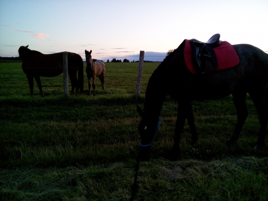 j'ai remis ca hier du coup et condition bien meilleure, et poulichon bien plus dans le travail. donc a revisé nos gammes, cercles serpentine et allongement en ligne droite au pas et au trot.