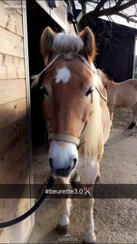 Je commence à demander à celle qui nourris si le matin ça allait : oui. Donc c'est à cause du maréchal. Il a du la faire trop courte. J'arrive après avoir conduit sous la neige. elle se tenait super mal. J'attend ma coach.