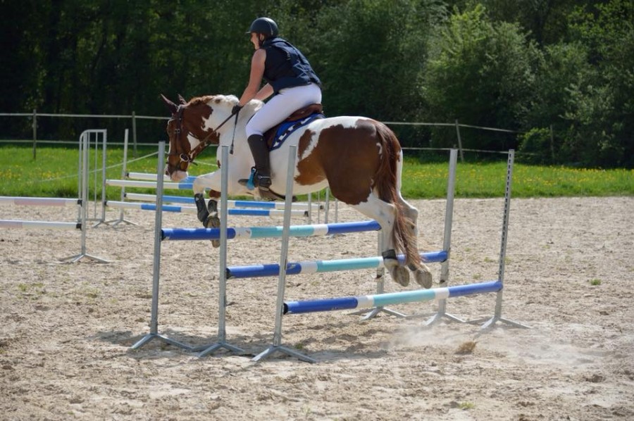 Hier j'etais en CSO club elite avec martingale, la jument a ete top, tonique mais au ordre, vraiment au taquet. j'ai de belles photos et une video. on fait 4 points en sortie de double (double de verticaux en legere descente, je rentre vraiment fort dedans) , mais on gagne quand meme l'epreuve !