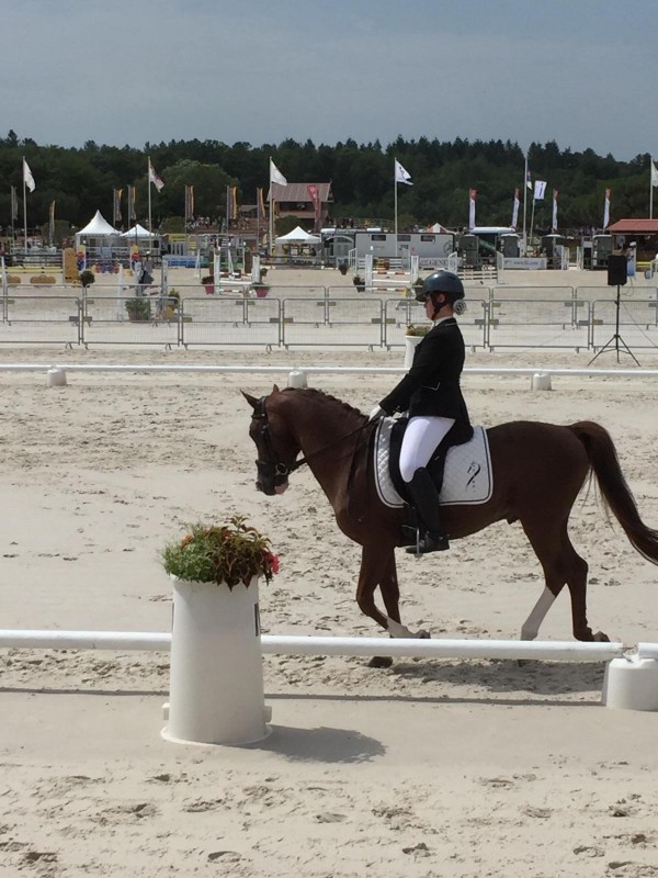 Il y a juste un an après aprés avoir parcouru la France de long en large à la recherche d'un poney à confier pour faire des concours en dressage. Nous allons voir ce dernier poney...promis juré si celui là ne convient pas j'arrête de faire des kilomètres et j'arrete de chercher un poney pour ma fille. On en a vu de très bons mais rien ne lui convient et là comme par miracle popeye (entier)était le bon le seul qui ne savait rien faire qui se dresse dès qu'un cavalier est sur son dos, il est gros, a été planté en saut bref...je crois que j'ai été assez inconsciente pour le prendre. J'ai signé le contrat propriétaire très sympa...heureusement. Durant 3 semaines il a fait un stage en éthologie histoire de lui réapprendre "les bonnes manières". Et là on a débuté un long travail d'apprentissage, de remusculation. Avril 2014 premier concours en poney 2 histoire de voir ce qu'il donne sur un carré de dressage 76% un premier bon résultat. Toutes les personnes qui le voit nous dise qu'il ne sera pas un poney de dressage il a le profil d'un poney de saut. On continue au vue des progrès, je crois en l'entraineur et en ma fille qui fait un travail énorme avec lui elle continue en éthologie avec lui ils deviennent de plus en plus proche. Juillet 2014 elle fait le championnat de France en poney 1 excellence elle finit le 2ème jour 4ème sur l'imposée. Décidement ils ont de l'avenir... cete été elle fait une amateur 2 imposée A elle est 2ème avec 62%