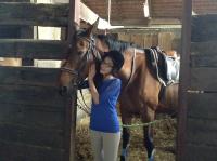 - première sortie en extérieur, on devait passer une flaque au trot, sauf que le poney a fait un écart au dernier moment. Chute a quelques cm de l'eau !