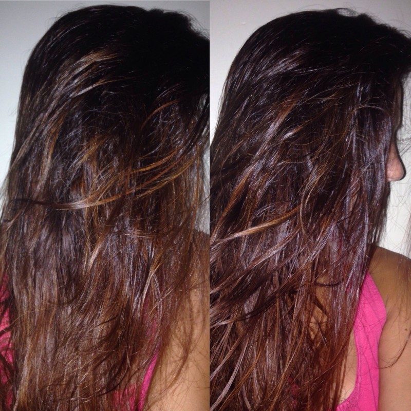 Donc j'ai mis du miel et de l'aloé sur les racines et le meme mélange avec de l'huile de noisette sur les longueurs. Et simple rinçage a l'eau :)