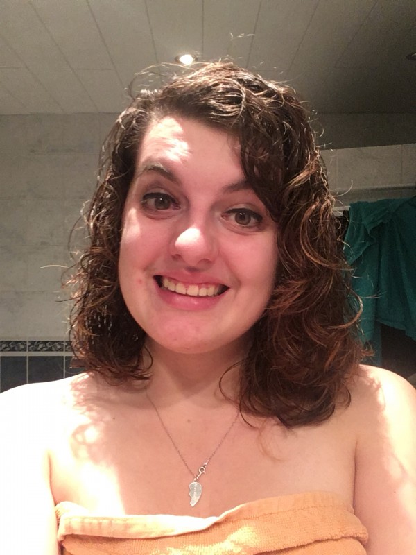 Photo à la sortie de la douche à mon dernier lavage de cheveux ^^