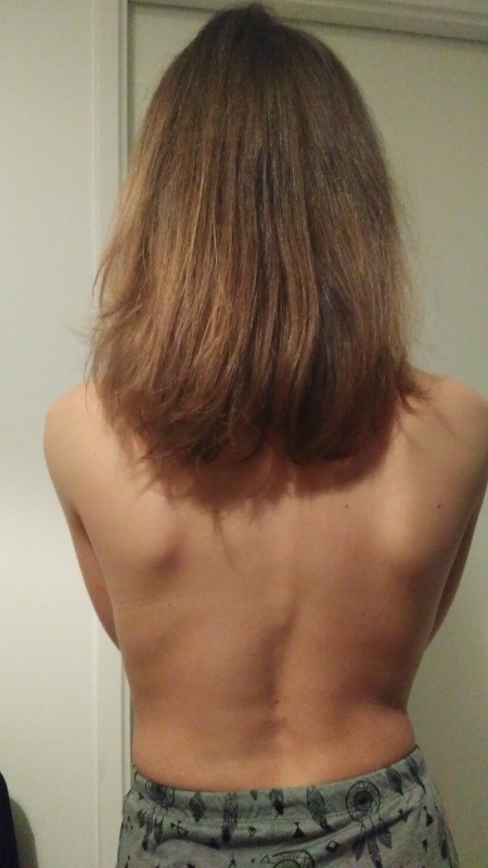 Le résultat et surtout ma longueur actuelle! (Et vous allez me dire que la coupe droite c'est moche ^^). Faites pas gaffe a mon dos, je me tenais mal!