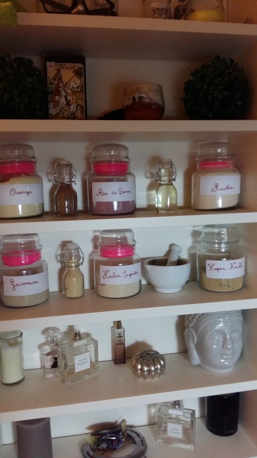 Apres j'ai surtout le problème que je n'ai plus de Place dans ma cuisine, pas assez dans ma salle de bain et que ces produits la, poudres, huiles... c'est comme la nourriture pour ma chienne... si je laisse à portée elle le mangera. Et elle sait ouvrir les pots !