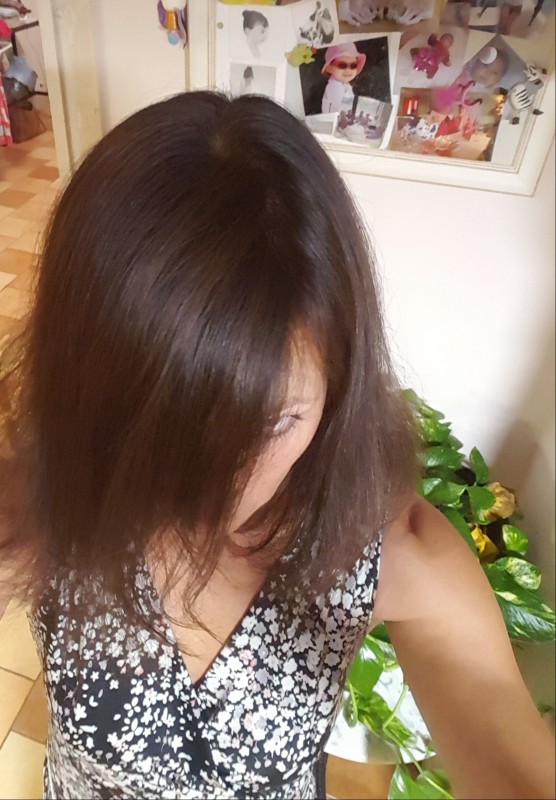 Donc salon naturel au top (2h30 sans ondes sans stress, avec de la tisane de romarin et une douce odeur de ... plantes ! Massages à gogo, un chat sympa sur les genoux, mes cheveux sont transformés !!