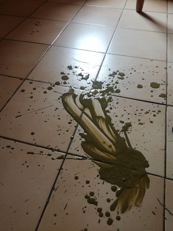 poulca oh non, elle était morte de rire. Le pot est tombé à la verticale, il y en avait jusqu'au plafond et on a nettoyé en plein fou-rire. Heureusement, j'avais vidé mes fonds de sachets pour faire trois doses, dont une à congeler... Donc il y en avait un peu trop malgré la chute... On a eu chacune notre henné