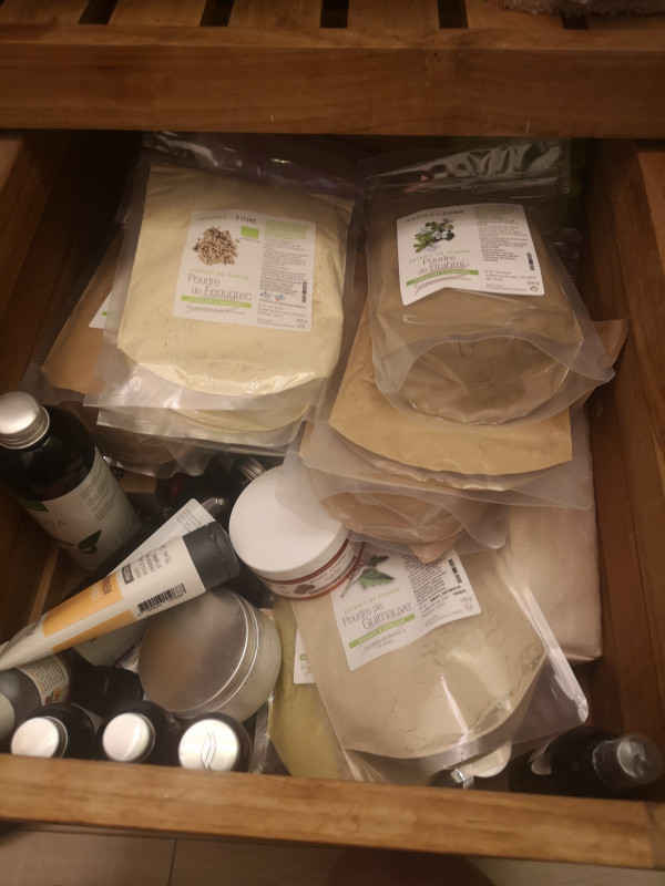 Commande reçue ici aussi, la coloration végétale henné caramel, du Brahmi pour une collègue de travail et le répulsif à moustique...
