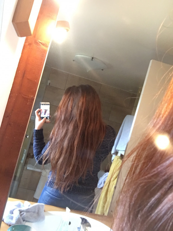 De base j'ai des reflets rouquins mais j'ai renforcé par un " ton sur ton " ( comme dit ma coiffeuse ) chimique ( malheureusement ) … au moins je fais honneur à mon pseudo sur CA ^^