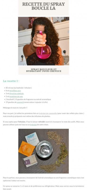La Chevelue -> idem, plutôt axée nature mais possède de très longs cheveux, avec quelques astuces pour cheveux secs