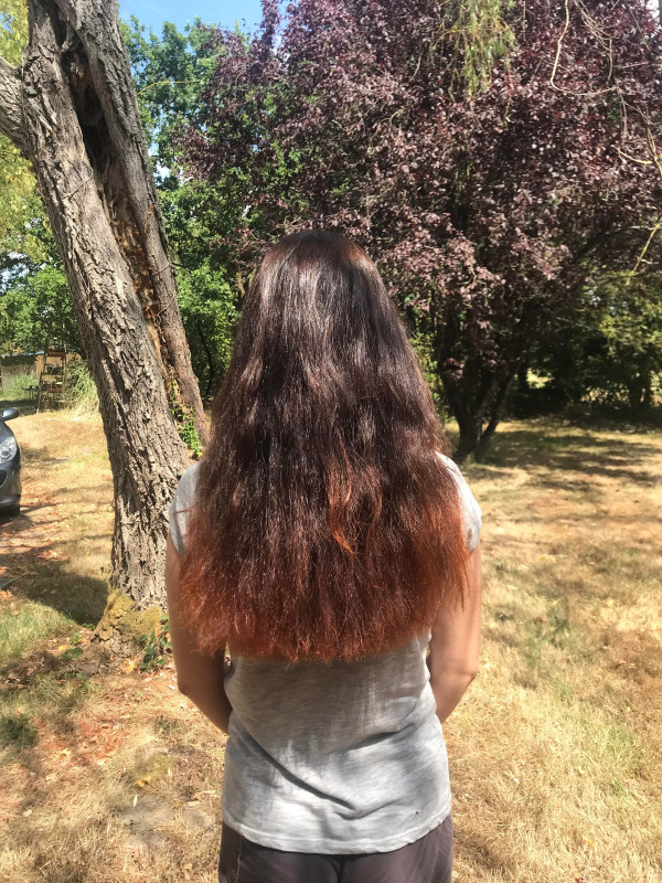 Perso, après un henné d'Egypte mi juillet qui a eu un très beau rendu ( belle couleur et beaucoup de brillance ), j'ai l'impression qu'ils commencent à sérieusement souffrir de l'été ( merci les baignades en mer, la transpiration, la poussière de poney et le soleil )