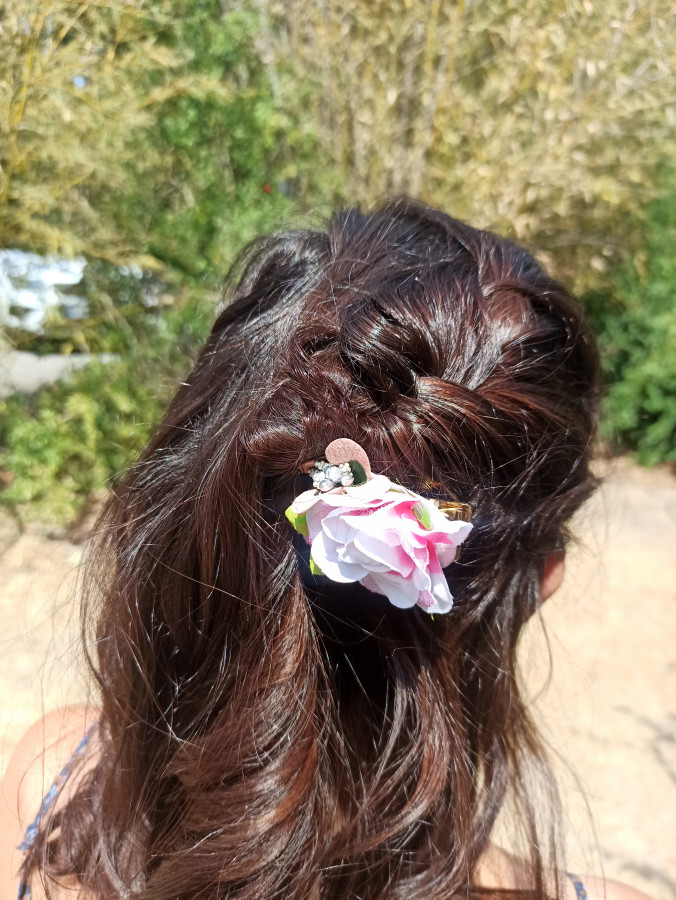 Je trace au peigne deux raies qui prennent maximum 3/4cm de cheveux de largeur, j'attache le reste et hop.
