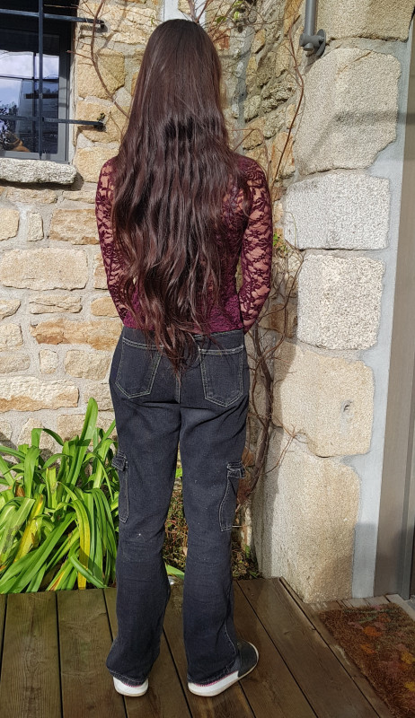 Jungle -> très beaux cheveux bruns, ondulés, très longs