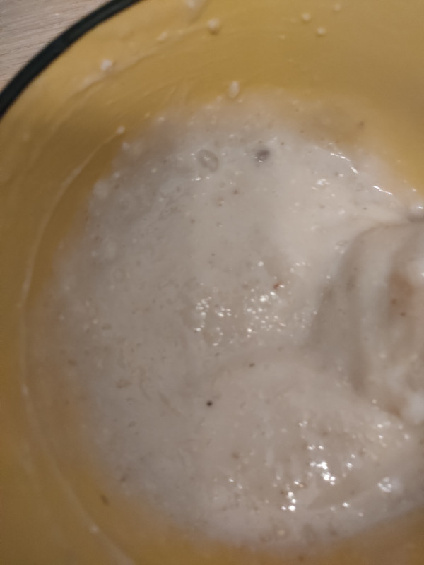 - 94% de gel d'avoine et lin (j'ai fait cuire dans de l'eau 10% de flocons et 3% de graines de lin, filtré, j'ai oublié de mixer, j'ai gardé ce qu'il me restait au congel je passerait au mixer le prochain coup)