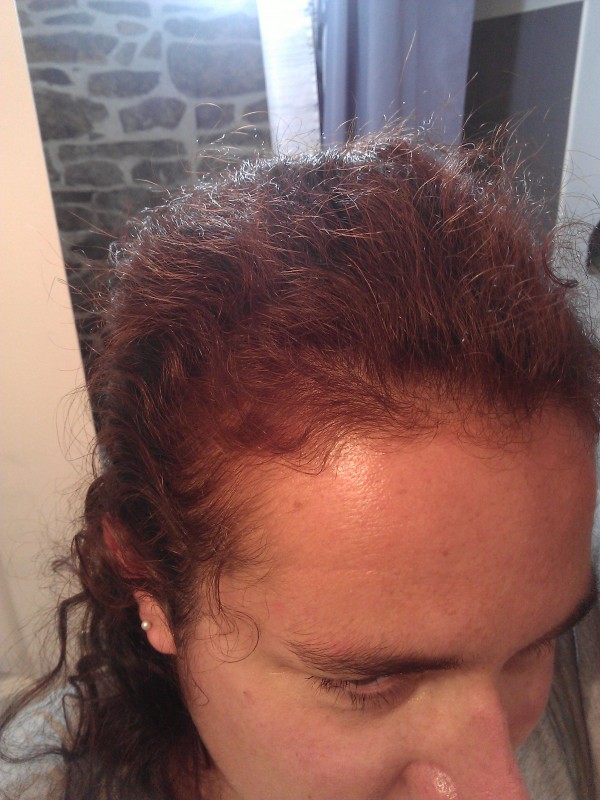 par contre, de ce que je peux voir, je ne l'ai pas posé de façon uniforme, j'ai l'air d'avoir une mèche bien rouge juste sur le devant