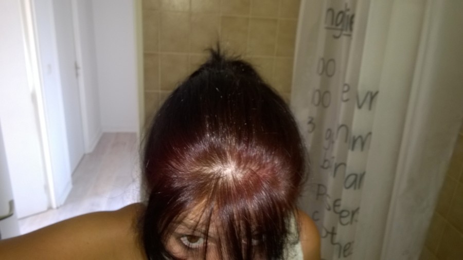 Lumière artificielle, flash (on voit bien la différence racines/longueurs)