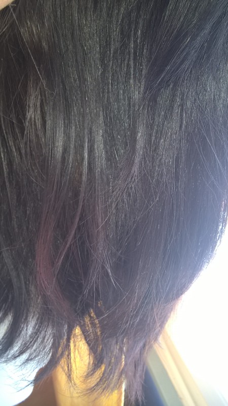 Niveau couleur c'est top, noir/chatain foncé en intérieur et noir avec des reflets prunes en extérieur :)