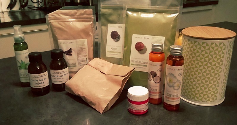 Du coup chez AZ j'ai pris > henné Katam et Egyptien, Shikakai, huile de coco, huile de camélia, aloe vera et une poudre de perle naturelle pour ma peau fatiguée.