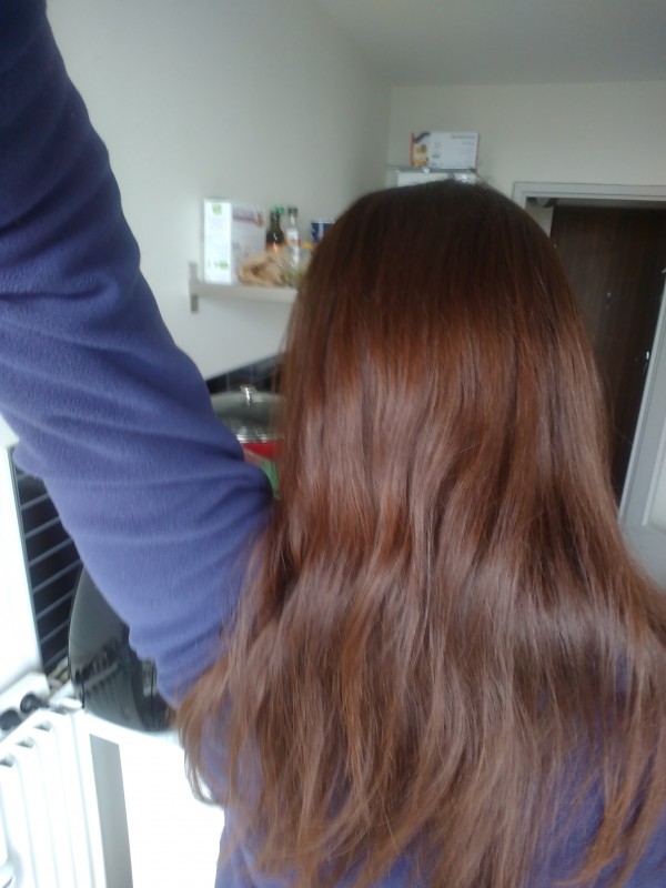 Petite photo pour illustrer (j'ai refais un henné d'égypte hier). De base j'ai les cheveux lisses et châtain clair.