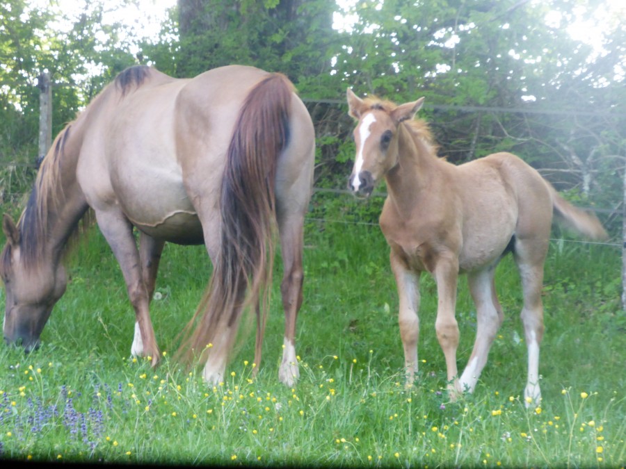 Et puis, fin février est née une pouliche parfaite dans mon élevage favori. Elle a la robe que j’envisageais, de la taille, une jolie morpho… Je ne sais rien du coup de cœur, encore moins sur photo, mais je crois que ça y ressemble ! Ayant à l’époque beaucoup aimé le modèle de sa pleine sœur de l’an passé, j’avais déjà contacté les éleveurs pour leur communiquer mon impatience de voir le bébé de cette année.