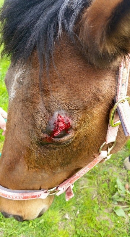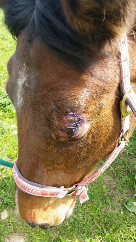 La véto a commencé par désinfecter la plaie avec de l'eau puis de la Bétadine savon, ensuite elle a pris son rasoir pour enlever tout les poils qui gêné pour faire les points, avec une seringue en plastique elle a fait couler de l'eau clair sur la plaie et elle a ensuite anesthésié la paupière pour recoudre (6 points de suture tout de meme !! )