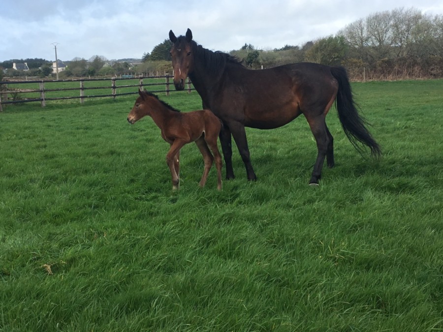 Gimagine Liroise (Quillange Guichen x Quaterbold du Payrol). Mâle bai né le 05/05/16 à 354 jours de gestation.
