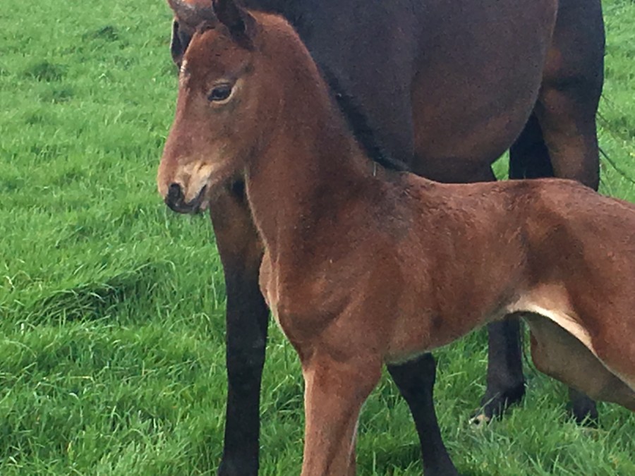 Golden Delight, femelle par Hilkens black delight et Pucy d'Iselay bai mais va foncé. Née le 4 avril à 335 jours de gestation.