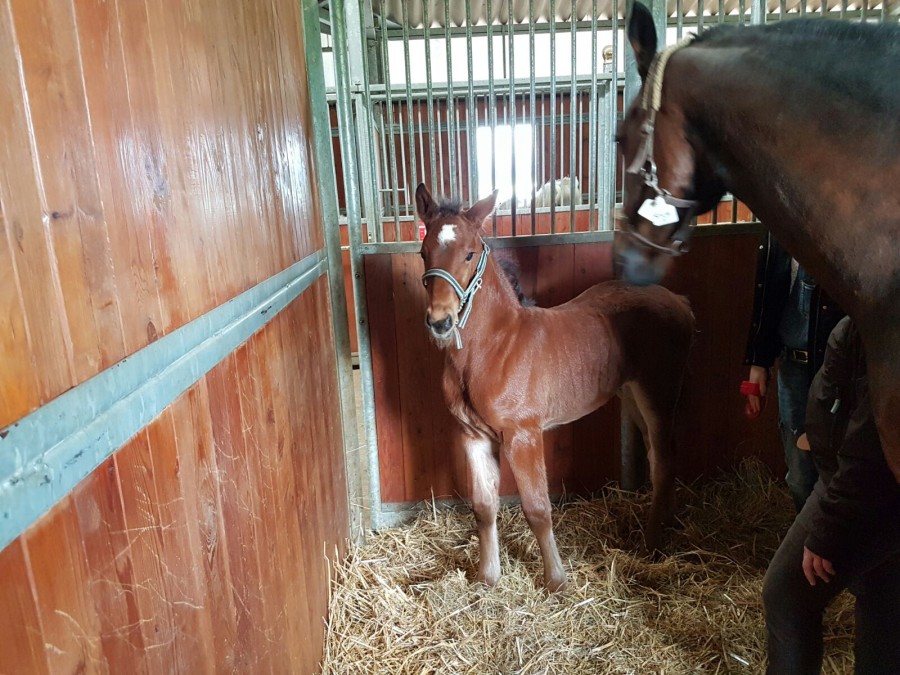 Golden Delight, femelle par Hilkens black delight et Pucy d'Iselay bai mais va foncé. Née le 4 avril à 335 jours de gestation.