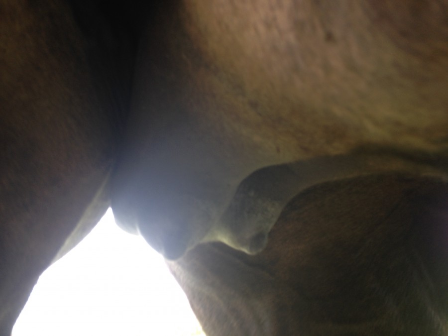 je pense qu'elle aura du lait, ses mamelles sont un chouia plus souple qu'une jument qui n'as jamais portée, et j'ai l'impression ce matin que sa veine de lait à un peu gonflée par rapport a ce qu'elle était.