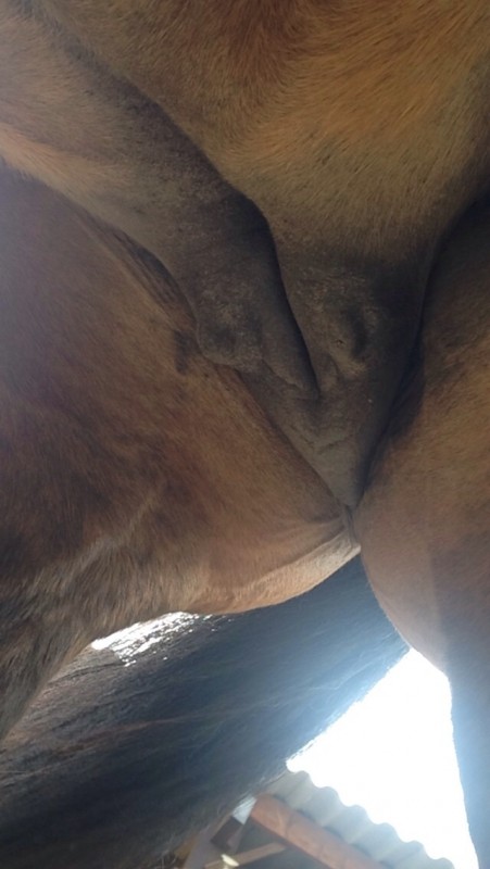 Ici rien pour le moment. La vulve ne semble pas relâchée... Mais je surveille quand même.