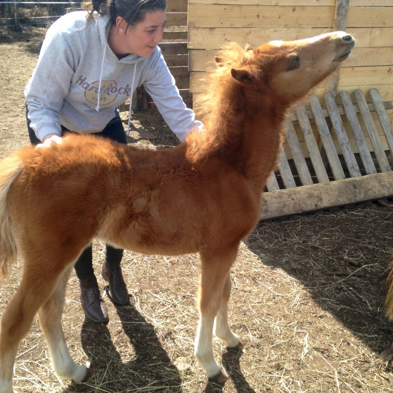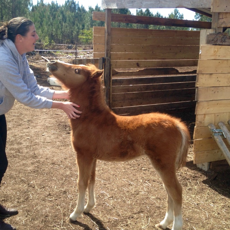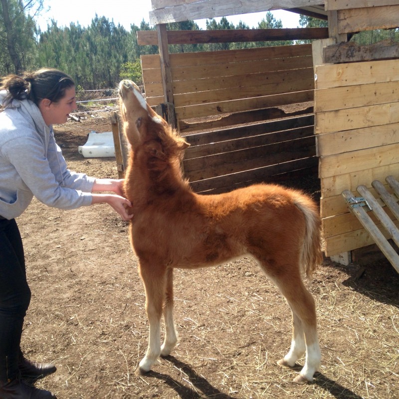 Ici je lui met un peu le licol. Le propriétaire de l'écurie me dit de déjà l'habituer à rester attaché près de sa mère mais je pensais pas faire ça si vite? ?