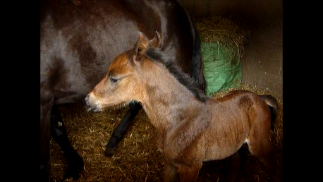 Golden Delight, femelle par Hilkens black delight et Pucy d'Iselay bai mais va foncé. Née le 4 avril à 335 jours de gestation.