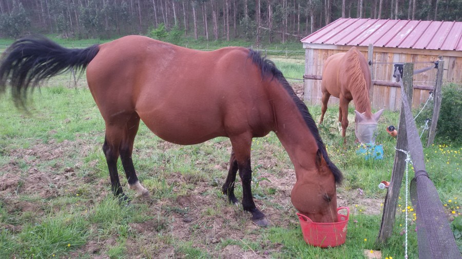 et sinon moi aujourd'hui, une petite grosse frayeur : Gimagine qui n'en fait qu'à sa tête et qui ne veut pas écouter sa mère qui passe son temps à se mettre entre lui et les fils de la clôture, a fini par traverser les fils et tomber dans le fossé plein d'eau de l'autre côté ! Bref, panique générale du côté du petit et de la mère pendant 3 minutes, mais bon rien de grave finalement ! 10 min plus tard, il y retournait !!! sans doute pour comprendre (je commence à le connaitre) et du coup là il a touché le fil avec le jus et donc il s'est enfui en couinant, j'espère que cette fois-ci, il va comprendre la leçon et permettre à sa maman de profiter un peu de l'herbe, car pour l'instant, elle passe son temps à le surveiller