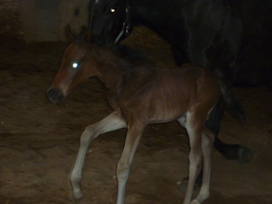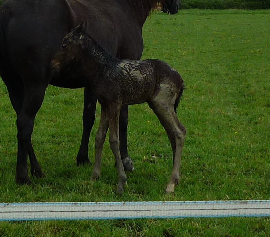 Golden Delight, femelle par Hilkens black delight et Pucy d'Iselay bai mais va foncé. Née le 4 avril à 335 jours de gestation.
