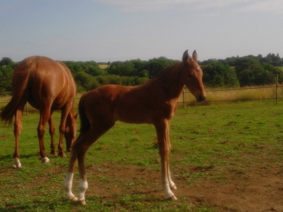 Golden Delight, femelle par Hilkens black delight et Pucy d'Iselay bai mais va foncé. Née le 4 avril à 335 jours de gestation.