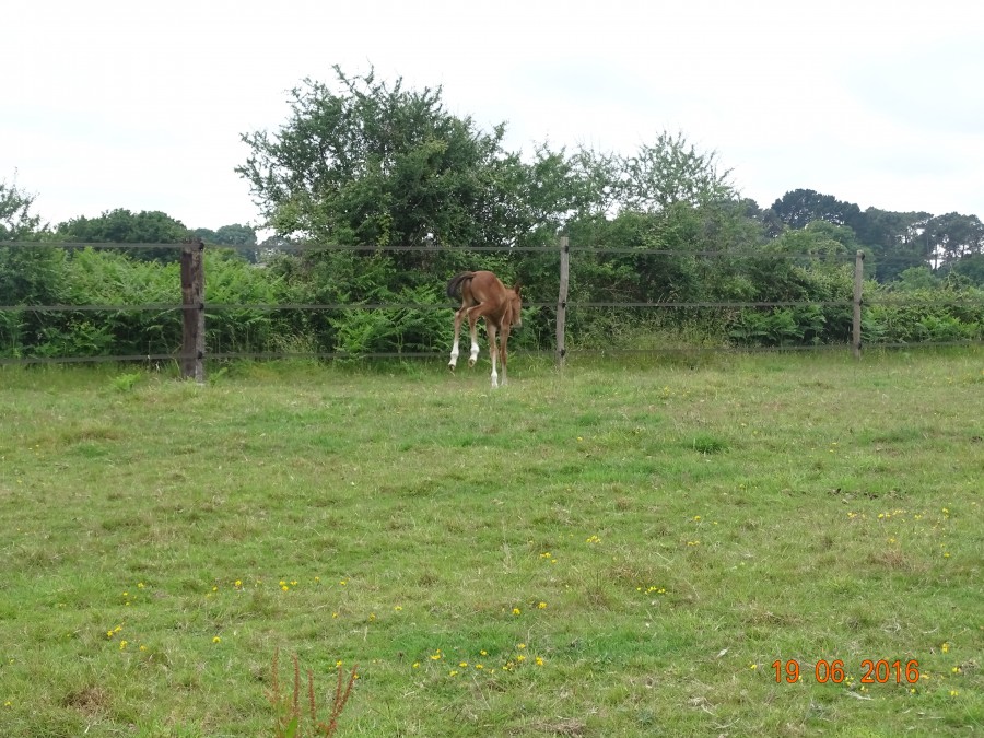 Accident de parc, donc pas de date précise pour le poulinage, mais à priori ce serait Avril.