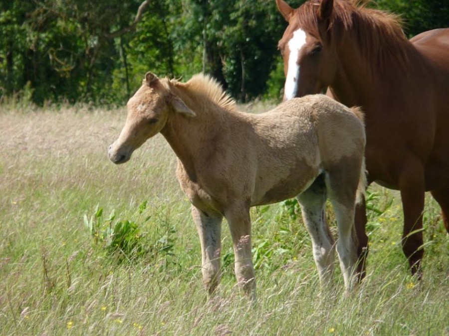 Parents: Cheyenne (Appaloosa - ONC ) et Carbone de la Caboterie, alias Chaman (Paint Horse x Pinto - ONC)