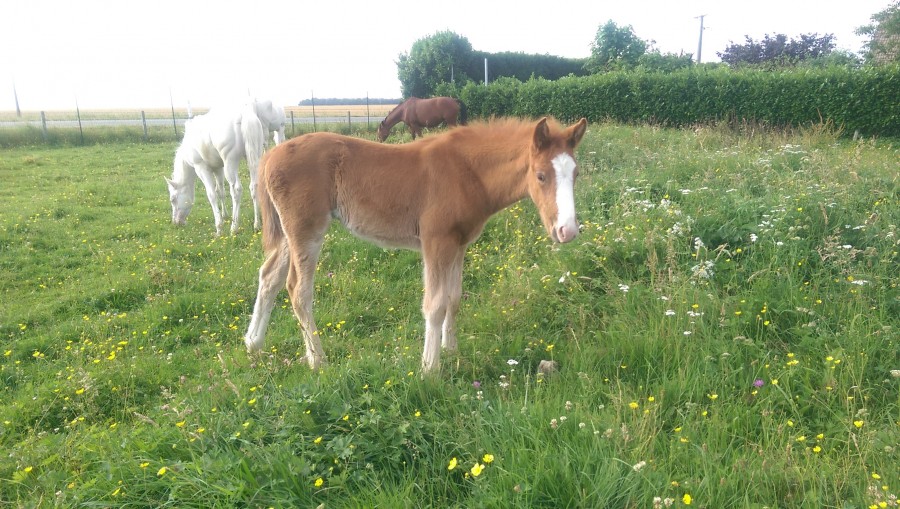 Gimagine Liroise (Quillange Guichen x Quaterbold du Payrol). Mâle bai né le 05/05/16 à 354 jours de gestation.