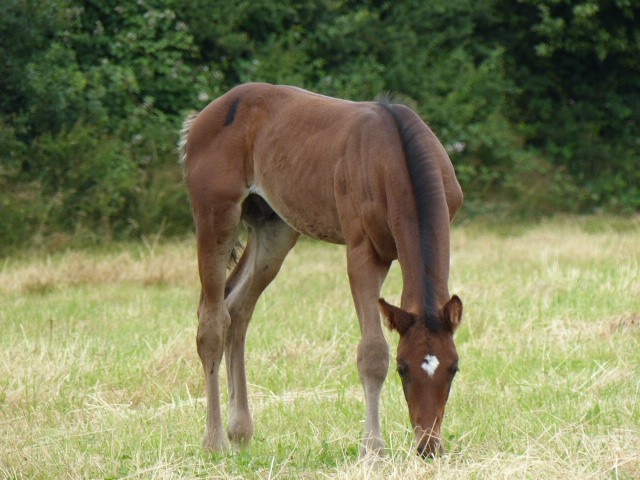 Golden Delight, femelle par Hilkens black delight et Pucy d'Iselay bai mais va foncé. Née le 4 avril à 335 jours de gestation.