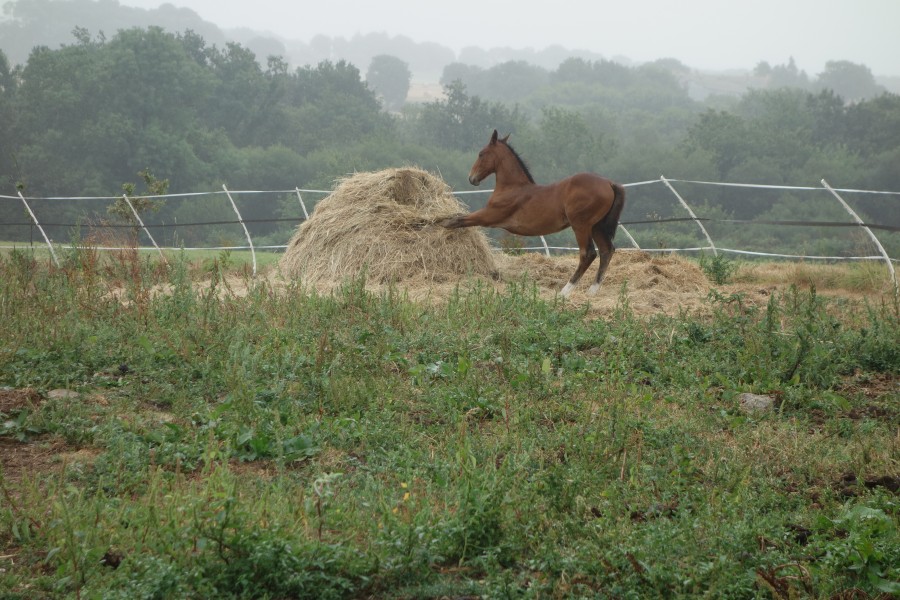 J'ai un copain qui s'est improvisé éleveur et étalonnier qui a acheté une poulinière pleine qui a heureusement pouliné seule comme une chef mais il vient d'acheter un étalon de 7 ans pas débourré qui donne même pas les pieds... une vraie galère parce que le machin est croisé cob et trakhenner et a des pieds bien moches, et il veut le faire ferrer des antérieurs cette semaine ! bref je vous passe les détails de cette cata...